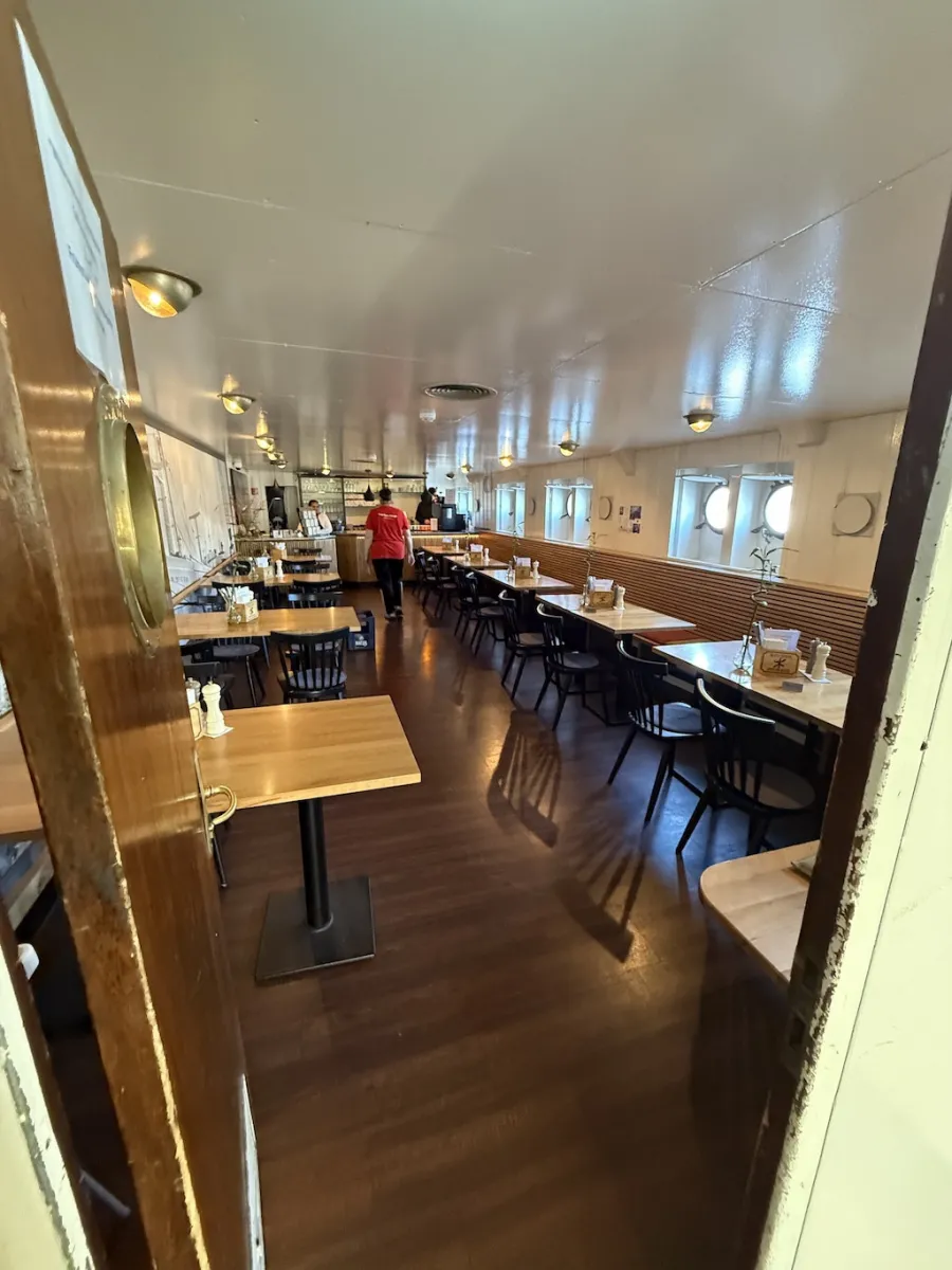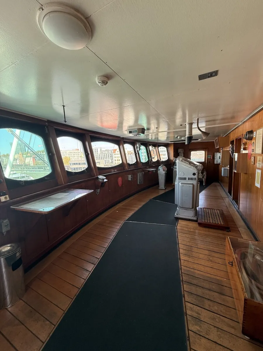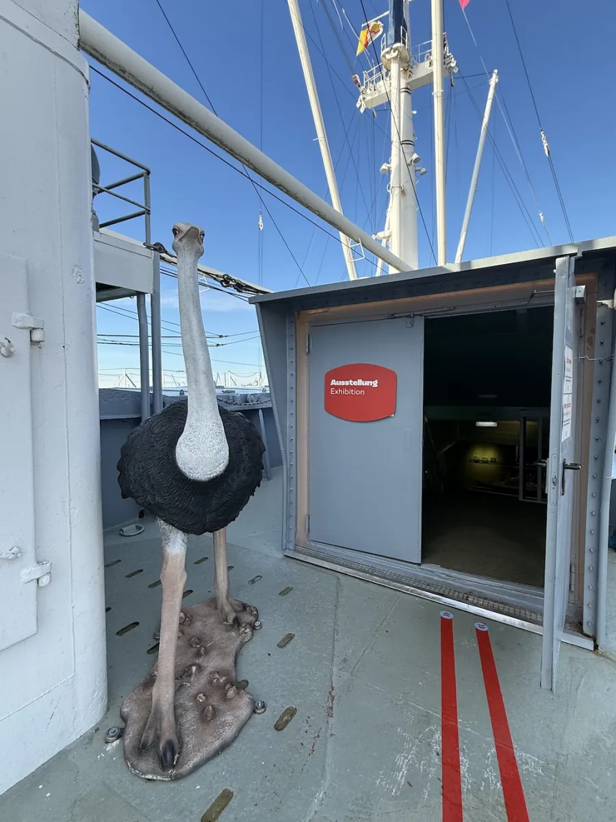 Einige Laderäume dienen als Ausstellungsfläche – mal zu maritimen Themen, mal mit moderner Fotografie oder politischen Fragestellungen. Besonders spannend ist der Kontrast zwischen dem rohen Frachtschiff-Charakter und der kunstvollen Aufbereitung in den Ausstellungen.