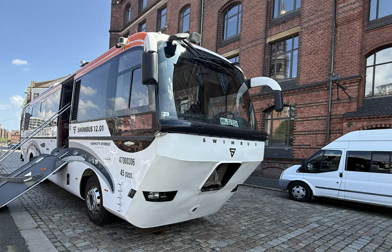 Nach der Rundfahrt durch die HafenCity folgt der wohl aufregendste Moment der Tour: In Rothenburgsort, im Bereich Entenwerder, verwandelt sich der Bus in ein Boot. Über eine eigens gebaute Rampe gleitet das Amphibienfahrzeug langsam, aber eindrucksvoll in die Elbe. Für die Gäste an Bord ist dies ein echtes Erlebnis – begleitet von leichtem Spritzwasser und dem Gefühl, nun auf ganz neue Weise unterwegs zu sein.